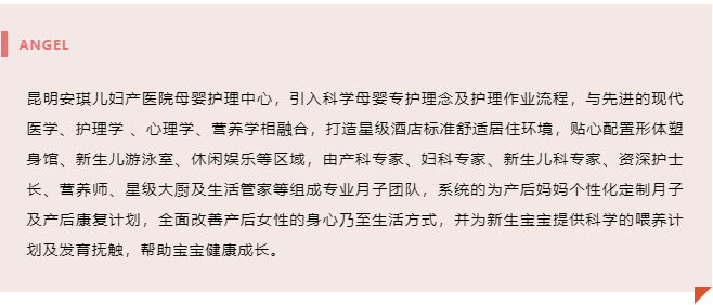 周女士在分享中说道:在安琪儿坐月子的日子里,可以感受到安琪儿母婴护理中心的每一位医护人员都是真心的爱着宝宝,一对一的专业母婴照护,细致又全面的服务是她两次生产都选择安琪儿最大的原因。