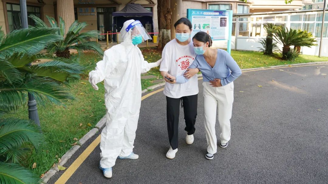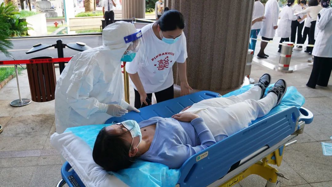 预检分诊护士到达现场进行体温复测,并详细询问患者信息,初步判断疑似新冠病毒感染。