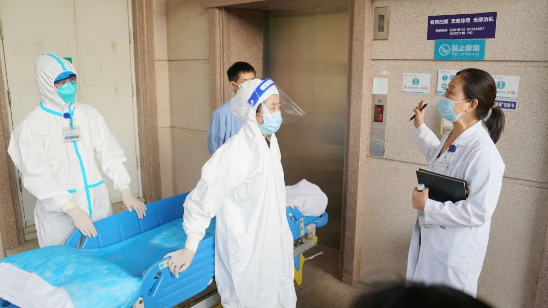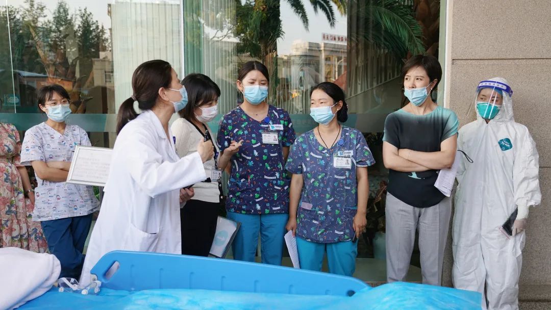 针对疑似病例“紧急临产”“宫外孕”两种情景,实操演练从隔离通道至隔离诊室,医生评估情况后再通过特定转运路线至手术室的防护过程。